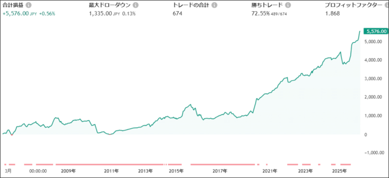 その考え方を米国株式市場のみならず、日本市場を含む個別株・ETF等向けに再構築。TradingView上で検証・再現できる Pine スクリプトツール(ストラテジー)として提供します。