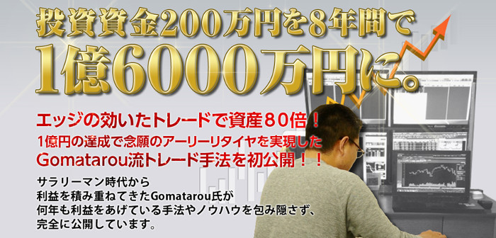 この講座はGomatarou氏が200万円の資金からはじめて、1億6000万円以上の資金を手に入れた方法を完全に公開しています。