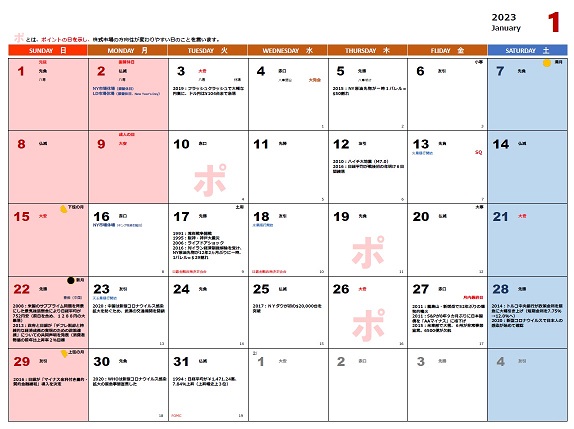 ポイントの日に向かってどのように動くかを考えることで、投資計画を組み立てる事ができます。源太カレンダーで市場を先読みし、自分の投資行動への守りと備えをしっかりと行えます。